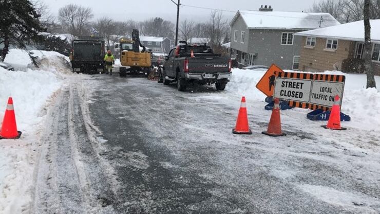 Halifax Water undertaking emergency water main repair in Lower Sackville, N.S.