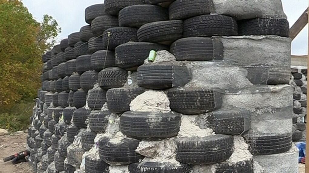Man building home using dirt, tires in Collingwood