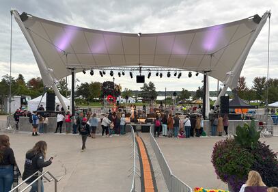 Troubadour Festival Meridian Place in downtown Barrie, Ont., is being transformed into a stage on Fri., June 13, 2025, for the Troubadour Festival's first open-air free concert.