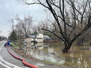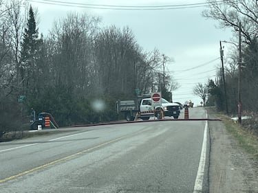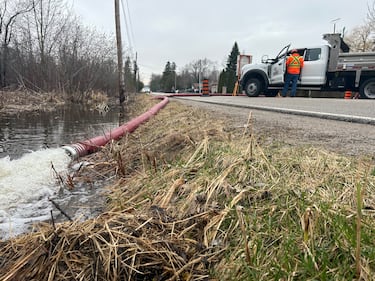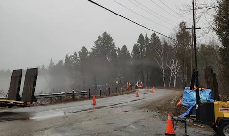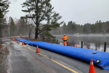 Muskoka The District of Muskoka installs cofferdams along Muskoka Road 14 in Fraserburg as flooding continues across the region on April, 15, 2026. (Jeff Lehman)
