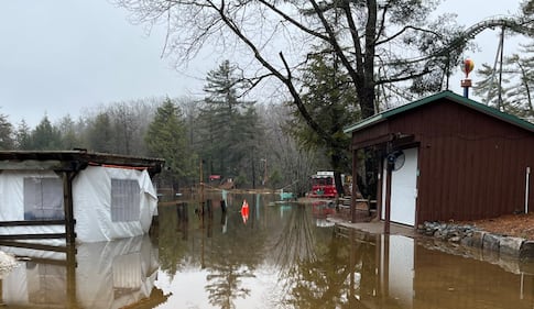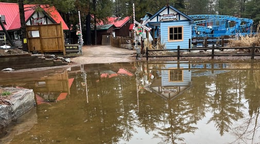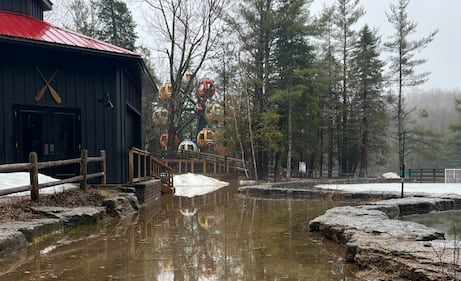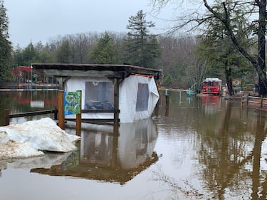 Santa's Village Spring flooding at Santa's Village located at 1624 Golden Beach Road in Bracebridge, Ont., on April 15, 2026. (CTV News/Rob Cooper)