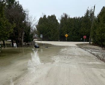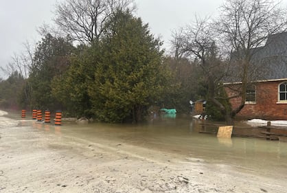 Severe flooding is shown in Osprey Mass flooding is shown in Osprey in the Town of Blue Mountains, Ont. in April 2026. (Matt Lupia)