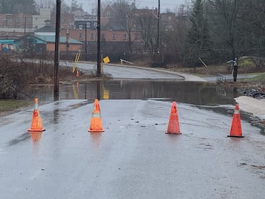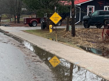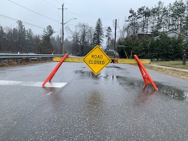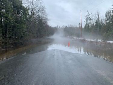 Flooded road A road is flooded in Bracebridge, Ont. on Tues., April 14, 2026. (CTV News/Rob Cooper)