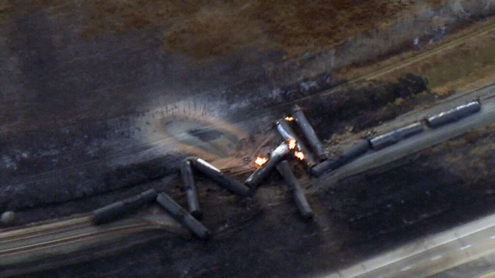 Train derailment fire will have to burn itself out before residents can go home