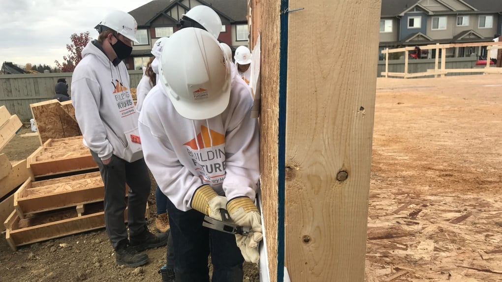 Students in Spruce Grove building house as part of high school curriculum