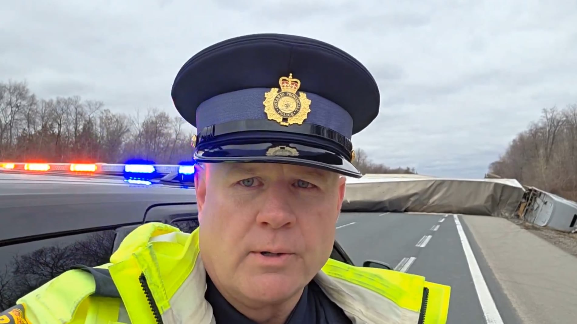 No injuries reported after transport truck crosses median on Highway 403