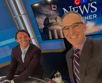 Leighanne Evans and Will Aiello at CTV News Kitchener on April 4, 2025. Leighanne Evans and Will Aiello at CTV News Kitchener on April 4, 2025.