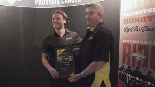 will aiello Will Aiello accepts a plaque from Grand River Motorcycle Ride for Dad on May 7, 2024.