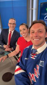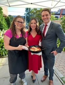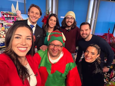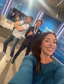 Will Aiello A behind-the scenes photo of Chef D, Will Aiello and Alexandra Pinto at CTV Kitchener in July 2023.