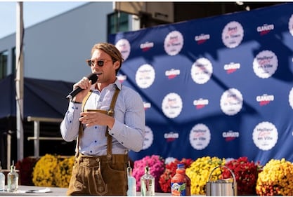 Will Aiello Will Aiello speaking to an Oktoberfest crowd.