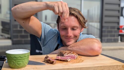 Ted Reade Chef Ted Reader and CTV's Will Aiello prepare to grill Ontario veal street tacos and blackened veal burgers with voodoo relish. (Jeff Turner/CTV News)