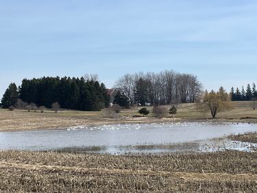 Kressler Benjamin Heidelburg Waterloo St. Clements Woolwich Dozens of swans on a pond near Kressler Road and Benjamin Road, just south of Heidelburg, Ont., on March 25, 2026. (Hannah Schmidt/CTV News)