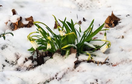 spring snow weather flowers generic Snowdrops in the snow. (Courtesy: Bruce Shapka)