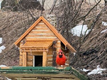 cardinal spring bird birdfeeder winter weather generic A cardinal perched on a frozen birdfeeder. (Courtesy: Jo-Anne Straus)