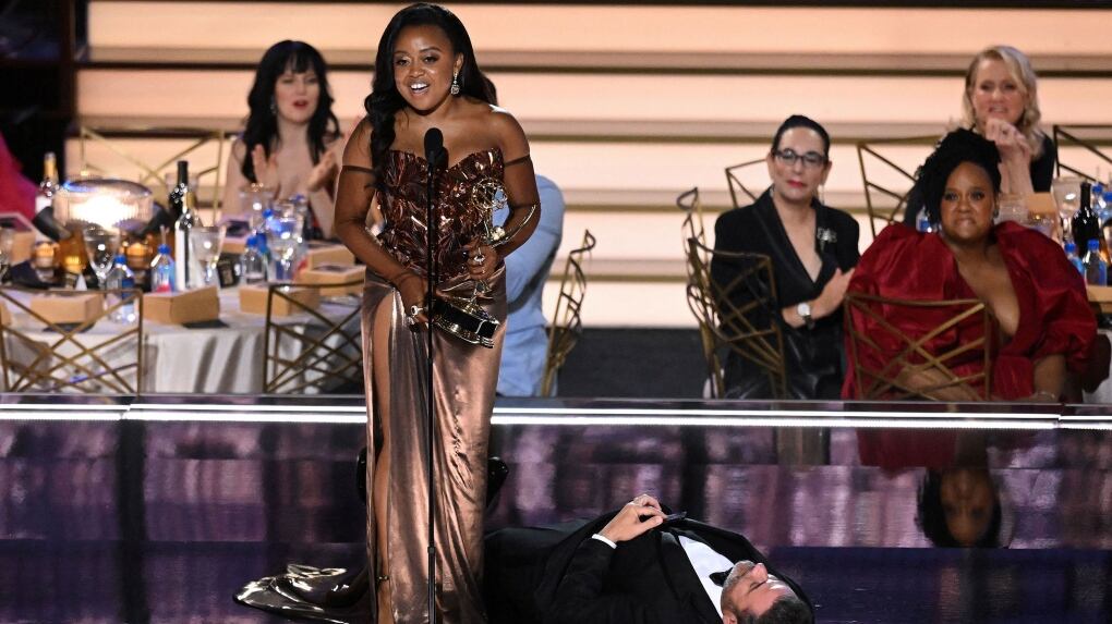 Quinta Brunson had to step over Jimmy Kimmel to accept her Emmy