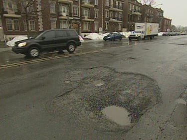 Peak pothole season on Montreal roads A pothole is seen in Montreal.