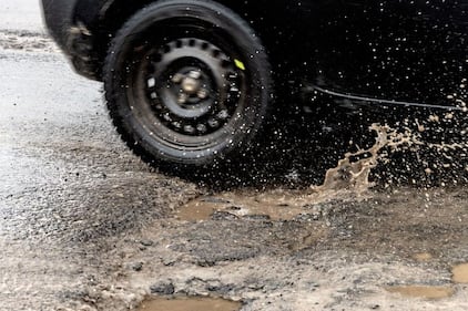 pot hole-1.9181667 A car driving through a pothole is splashed with water in Montreal.