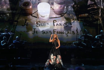 Céline Dion performs “The Show Must Go On” at the Billboard Music Awards at the T-Mobile Arena on Sunday, May 22, 2016, in Las Vegas. (Chris Pizzello/Invision/AP)