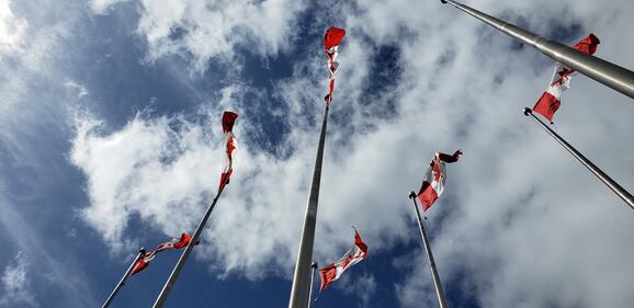 Through your lens Flags behind the National Archives in Ottawa on Sunday, April 6, 2025. (Candice B/CTV Viewer)