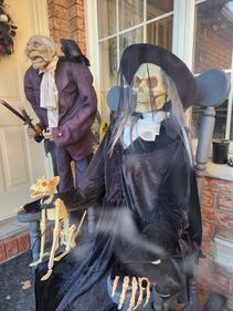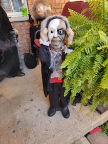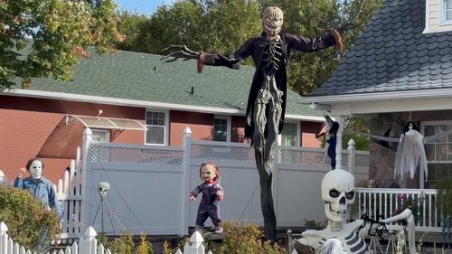 Halloween House on Emily Street 'All Hallows Churchyard' on Emily Street. Still adding to the display with more surprises though for next week like a fog machine, a cauldron, a few more mannequins, and a replica of the Ark of the Covenant for a little taste of that scene from Raiders of the Lost Ark. There are multiple animatronics, including tombstones and several mannequins, as well as a full suit of armour on the porch. I’ll be collecting donations for the Society of St. Vincent de Paul, as is fitting with me theme of emphasising the true meaning of Hallowe’en as the Christian holy day of (All) Hallow(s) Even(ing), the Eve of All Hallows Day (All Saints Day). (Ryan Ganderton/CTV Viewer)