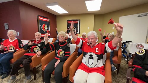 Senators Playoffs 2026 Senators fans at The Court at Barrhaven retirement community cheer on the team during NHL Playoff hockey on Saturday, April 18, 2026. (CTV News Ottawa)