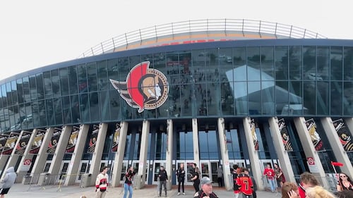 Senators Playoffs 2026 Front entrance of the Canadian Tire Centre during Game 1 of Ottawa Senators NHL Playoff hockey vs. Carolina Hurricanes on April 18, 2026. (CTV News Ottawa)