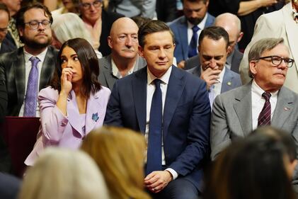Royal Visit to Ottawa - Day 2 Conservative Leader Pierre Poilievre and his wife Anaida Poilievre are shown ahead of King Charles delivering the speech from the throne in the Senate in Ottawa on Tuesday, May 27, 2025. THE CANADIAN PRESS/Chris Young
