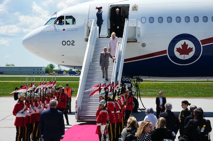 King Charles and Queen Camilla exiting plane King Charles and Queen Camilla arrive at the Ottawa International Airport in Ottawa for a royal visit on Monday, May 26, 2025. THE CANADIAN PRESS/Sean Kilpatrick