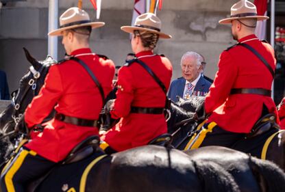 King Charles King Charles looks over at the members of the Royal Canadian Mounted Police Musical Ride that accompanied him as he travels to Canada’s State Landau to the Senate in Ottawa on Tuesday, May 27, 2025. THE CANADIAN PRESS/Christinne Muschi