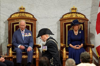 King Charles and Queen Camilla King Charles and Queen Camilla look on ahead of the King delivering the speech from the throne in the Senate in Ottawa on Tuesday, May 27, 2025. THE CANADIAN PRESS/Adrian Wyld