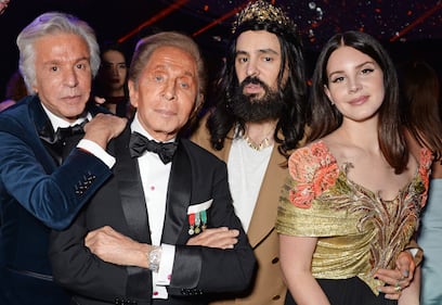 (L to R) Giancarlo Giammetti, Valentino Garavani, Alessandro Michele and Lana Del Rey attend The Fashion Awards 2018 in partnership with Swarovski after party at the Royal Albert Hall on December 10, 2018 in London, England. (Photo by David M. Benett/Dave Benett/Getty Images)