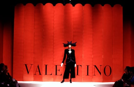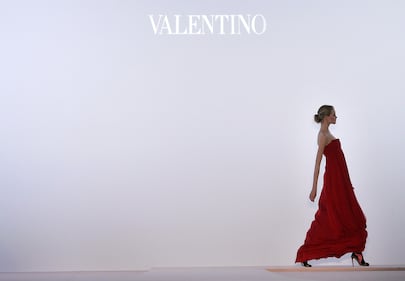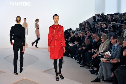 A model walks on the runway at the Valentino Fall/Winter 2008-2009 ready-to-wear collection fashion show in Paris, France, on Thursday, Feb. 28, 2008. Paris Fashion Week continues through the weekend. (Photo by Judith White/Bloomberg via Getty Images)