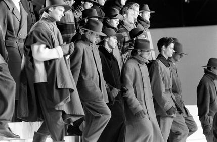 Models in show finale of the Valentino Men's Fall 1990 Ready To Wear Runway Show. (Photo by Donato Sardella/Penske Media via Getty Images)
