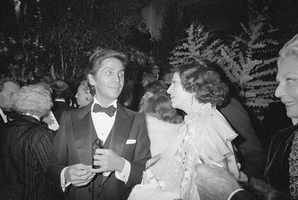 Valentino and Jacqueline Kennedy Onassis attend the Metropolitan Museum of Art Costume Exhibit "Hapsburg Era Fashions" at the Metropolitan Museum of Art in New York City on December 3, 1979. (Photo by Ron Galella/Ron Galella Collection via Getty Images)