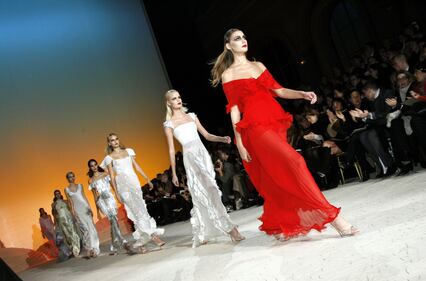 Models walk the runway during the Valentino fashion show as part of Paris Fashion Week Haute Couture Spring/Summer 2006 on January 23, 2006 in Paris, France. (Photo by Michel Dufour/WireImage)