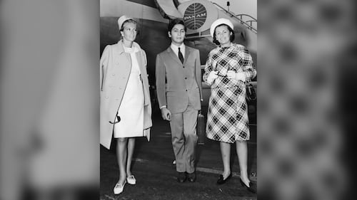 Left to right: Italian socialite and beauty expert Princess Luciana Pignatelli and Italian fashion designers Valentino Garavani and Princess Irene Galitzine arriving at John F. Kennedy Airport, New York, 15th September 1965. They are in New York for a charity fashion show at Alexander's department store. (Photo by Archive Photos/Getty Images)
