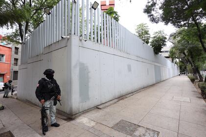A National Guard patrols the area outside of the General Prosecutor's headquarters in Mexico City, Sunday, Feb. 22, 2026, after authorities reported that the Mexican Army killed Jalisco New Generation Cartel leader Nemesio Oseguera, known as "El Mencho." (AP Photo/Ginette Riquelme)