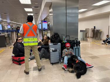 Passengers wait for updates inside the Puerto Vallarta airport after the military closed and secured the facility on Sunday, Feb. 22, 2026. THE CANADIAN PRESS/Handout - Wendy Buelow