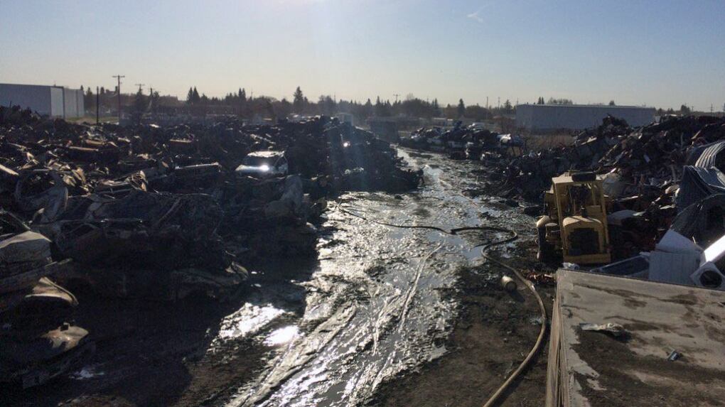 Auto wrecking fire nearly extinguished in Saskatoon