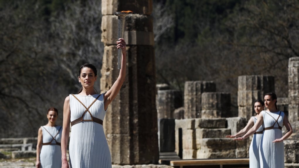 Amid virus precautions, Tokyo Olympic flame is lit in Greece