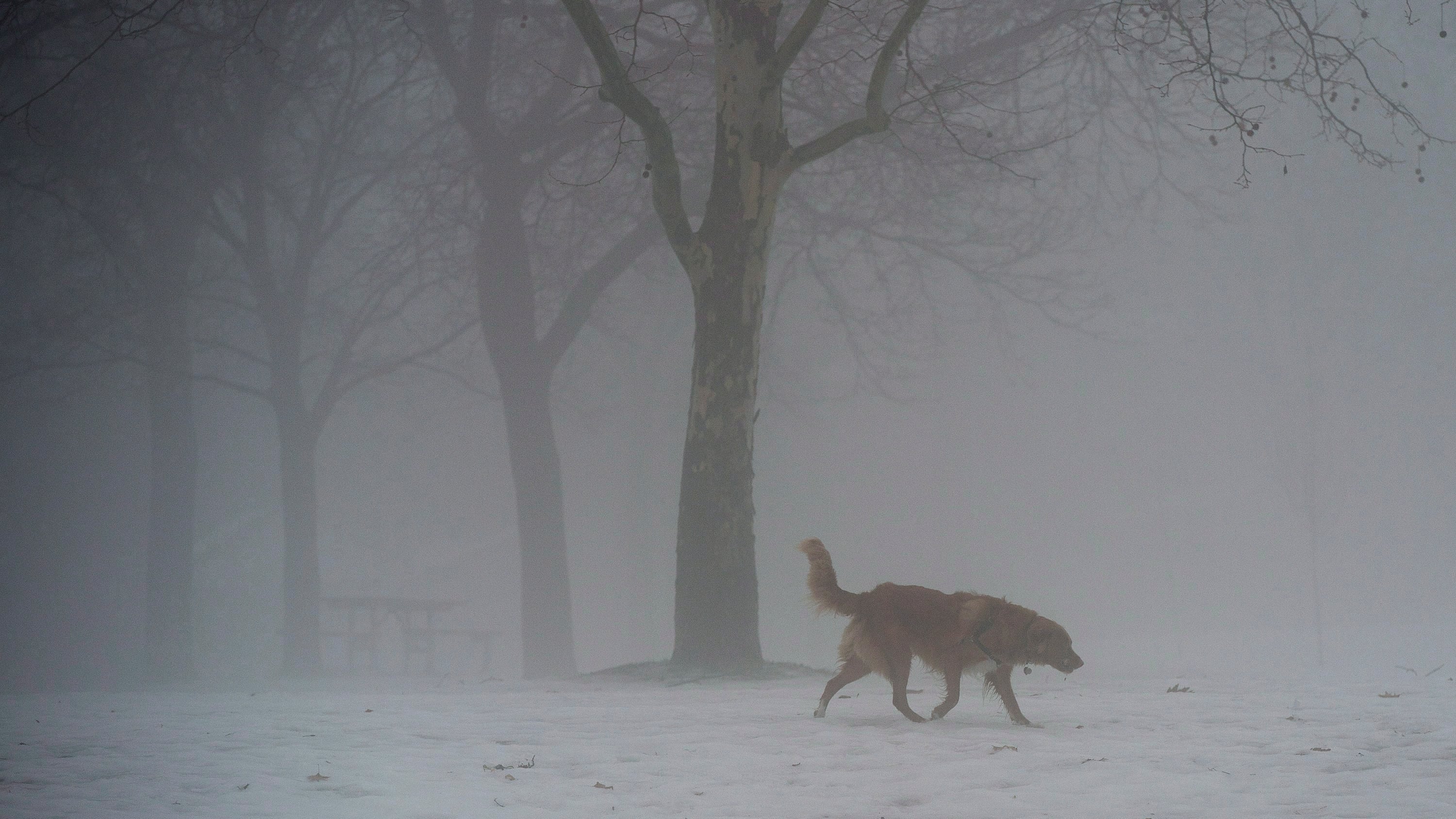 A dog makes his way through the misty fog at a park in Toronto on Saturday, January 11, 2014. THE CANADIAN PRESS/Nathan Denette