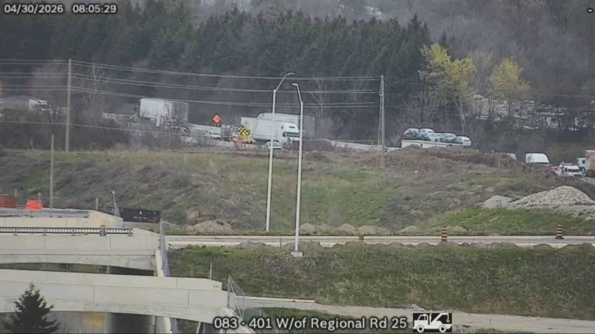 ‘Really jammed up:’ Drivers face challenging commute on Hwy. 401 after truck slams into guardrail