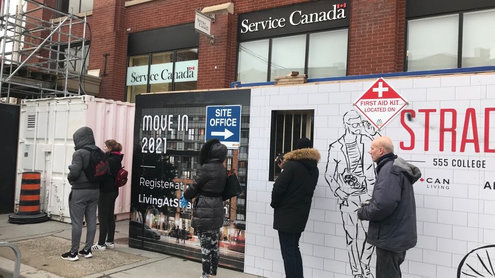 Unemployed workers line up at Service Canada to file EI amid COVID-19 pandemic
