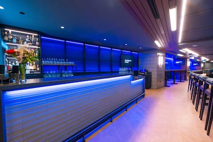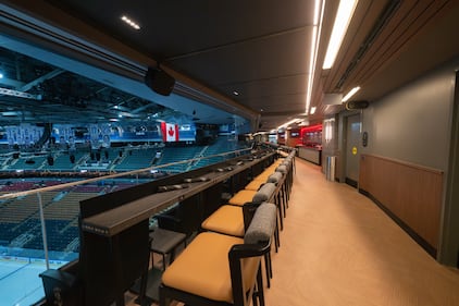 Eight loge suites on the 500 Level were also reconfigured into a new 100-person Loge Club, which aims to extend the social fan atmosphere to the upper levels. Members of this refined-casual space can enjoy all-inclusive food offerings, private washrooms, and premium vantage points of the court and ice as well as direct elevator access in the coming months. (Scotiabank Arena/photo)