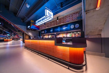 It will include the completion of the 300 Level Concourse, with “consistent visual and purposeful enhancements to the remainder of the space,” notably the transformation of the Coors Light Chill Zone. Highlights of that space include an expanded footprint with more social-first spaces, allowing for easier flow to the central bar space; upgraded finishes featuring contemporary texture blocking; and a new primary bar with a large mountain installation. A 216-inch diagonal state-of-the-art LG MAGNIT micro-LED digital display will also be installed in this pace. Further, the zone’s infrastructure will be optimized for live music and entertainment.