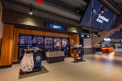Nine bars and concession stands have also been revamped, removing the traditional walk-up counters and leveraging a rotating wall design to easily flip from Maple Leafs to Raptors merchandise more efficiently and emphasizing self-service and transaction speed as half of the stands now use ‘Grab and Go’ or Amazon’s ‘Just Walk Out’ technology.