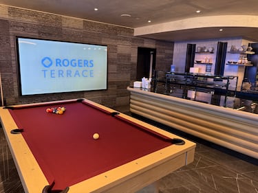 The space features several bars along with lounge-style amenities, including a pool table, designed to create a more relaxed environment for fans. (Jermaine Wilson/CTV News Toronto).