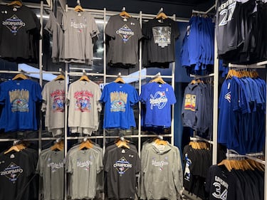 Among the most in-demand items are caps from the team’s recent World Series run against the Los Angeles Dodgers.