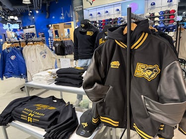 The team has also notably partnered with Roots on a black and gold collection that includes hoodies, t-shirts and caps. (Jermaine Wilson/CTV News Toronto).