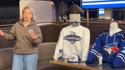 “90 per cent of our home games feature a giveaway, theme day or a specialty ticket,” said Director of Promotions Jess Wood. “Starting on opening night all fans will receive an American League champions pennant.” (Jermaine Wilson/CTV News Toronto).